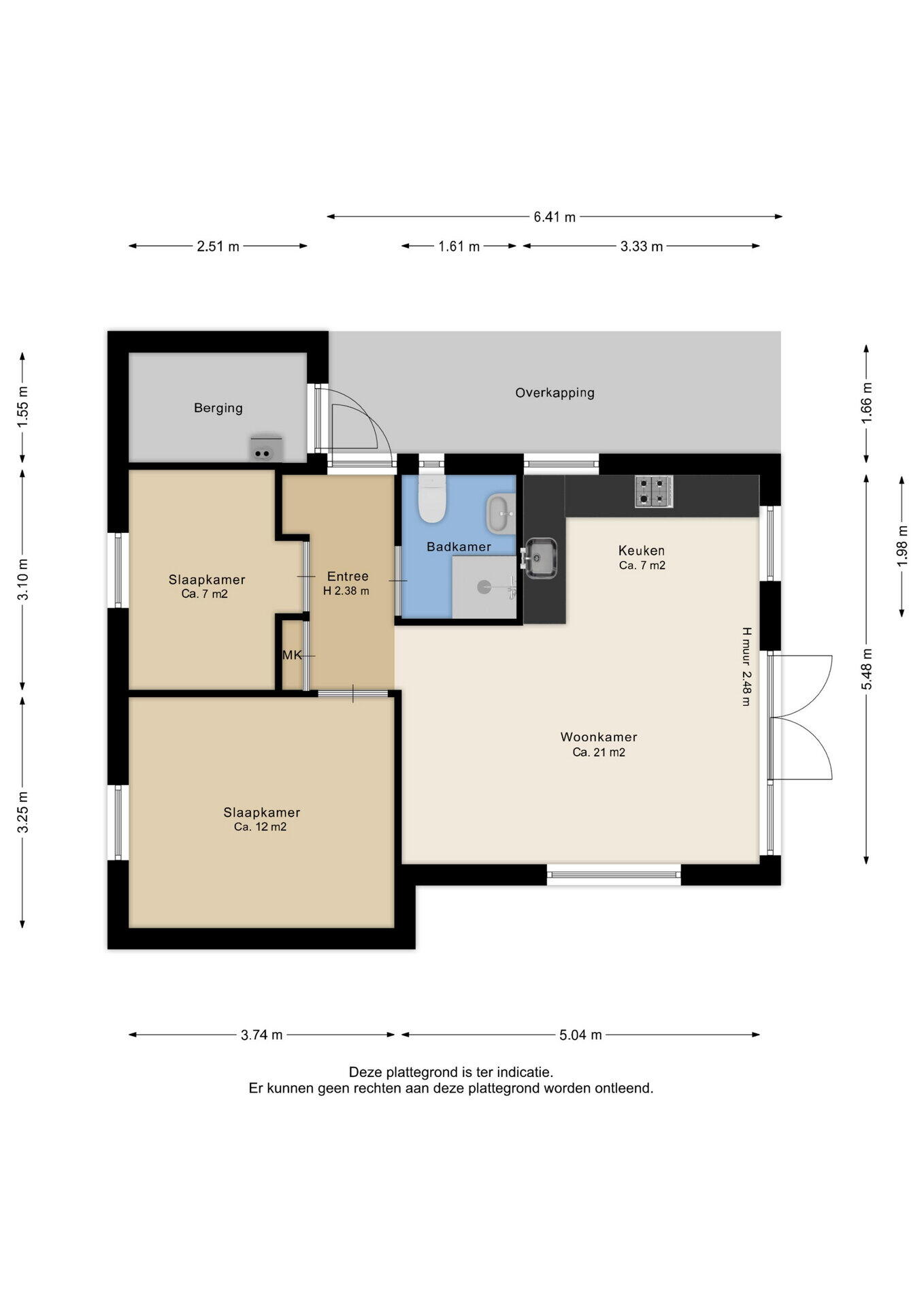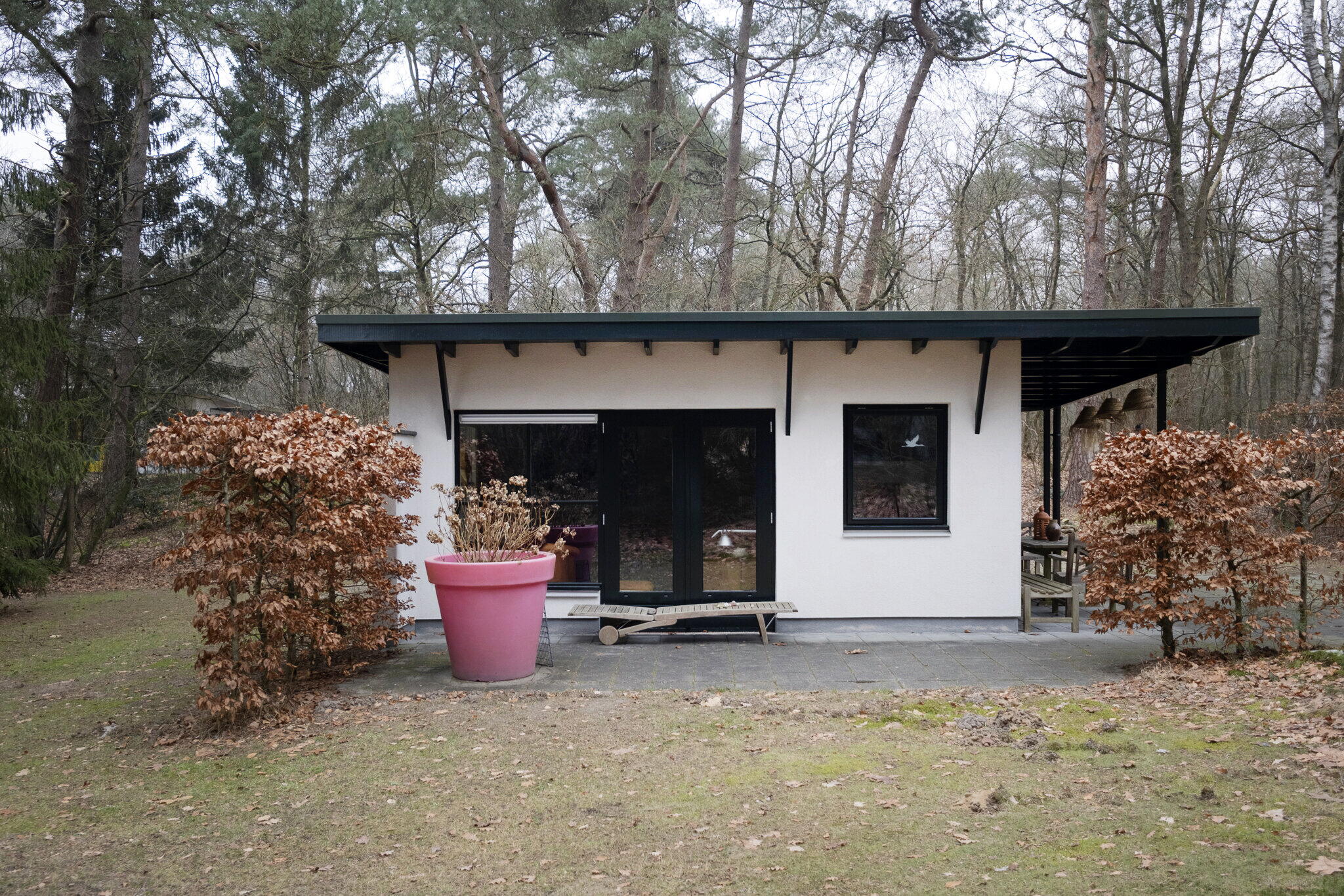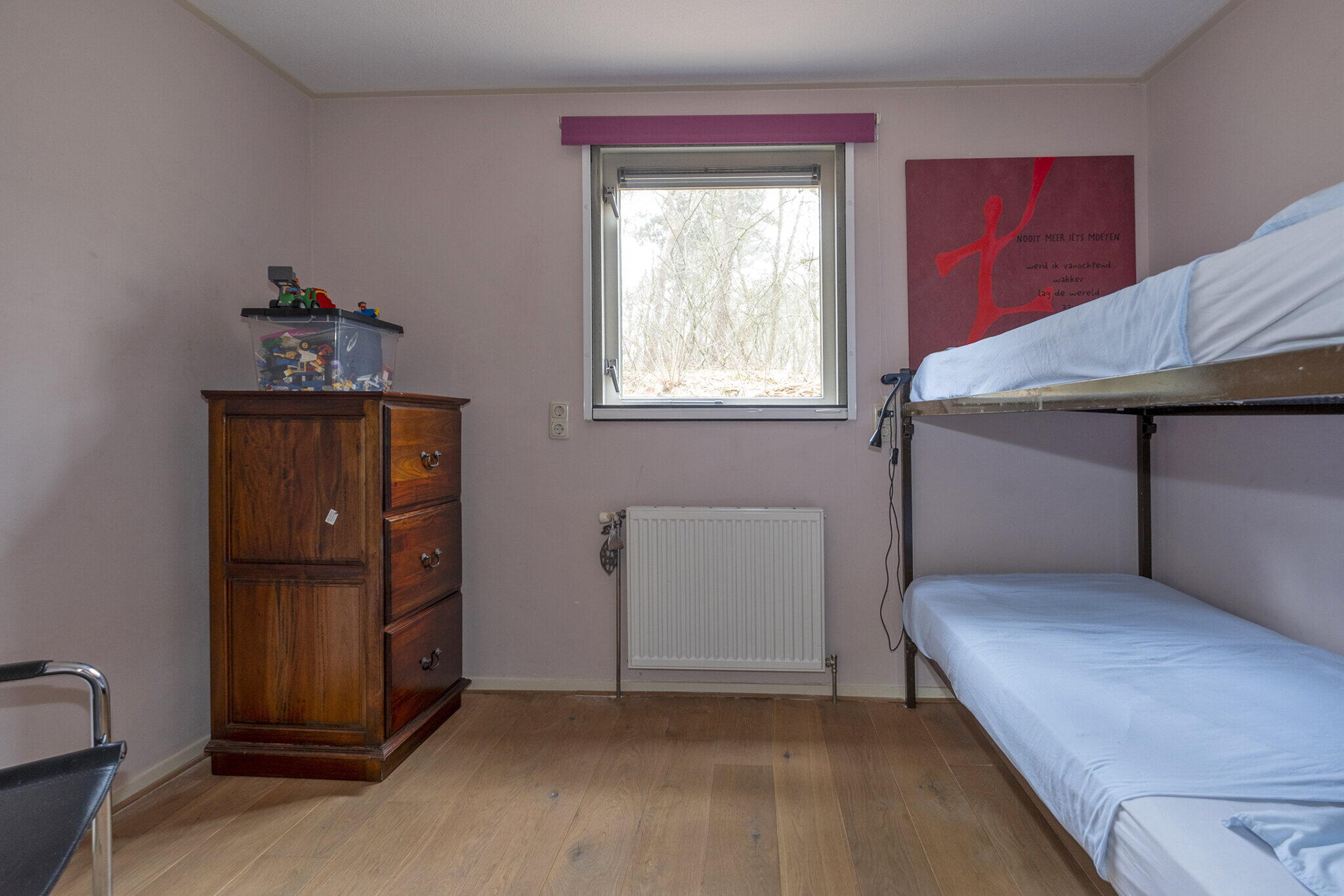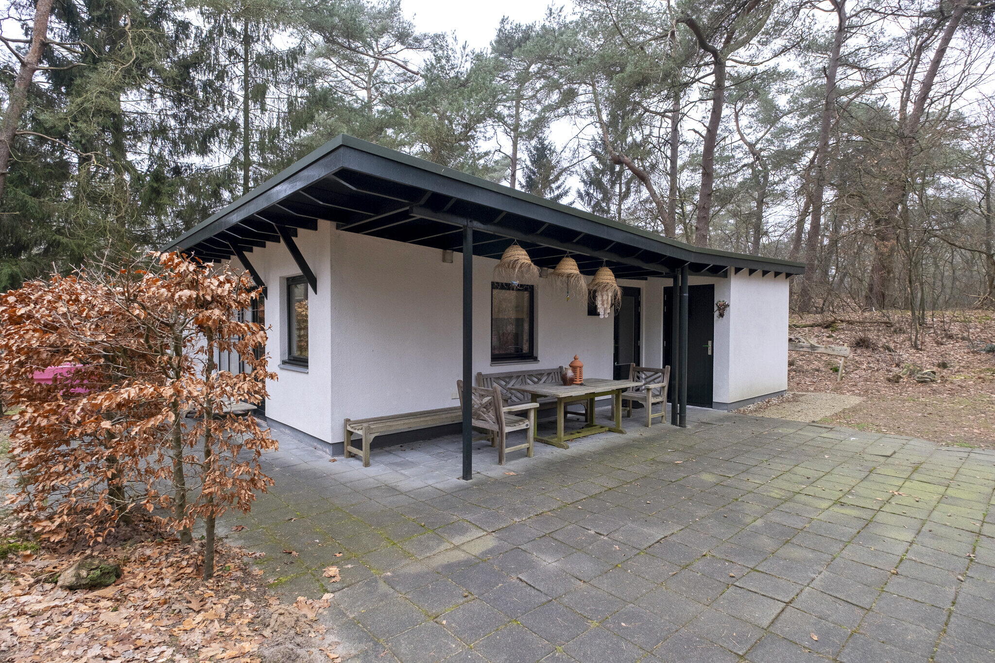 Entree in hal, lichte woonkamer met open keuken (ca. 28m²) met een prachtig uitzicht op het bos rondom. Via de openslaande deuren aan de voorzijde heeft u direct toegang tot het zonnige zitterras. De open keuken is modern, heeft een koelkast, 4-pits gaskookplaat, vaatwasser, oven en volop bergruimte. Op de vloer licht een stijlvolle houten vloer die doorloopt in de twee slaapkamers (ca. 12m² en ca.7m²). De nette badkamer is voorzien van een toilet, douchecabine en wastafelmeubel. Aan de zijkant is een overdekte veranda geplaatst waar het heerlijk vertoeven is. Direct naast de woning bevindt zich parkeerruimte voor twee voertuigen.